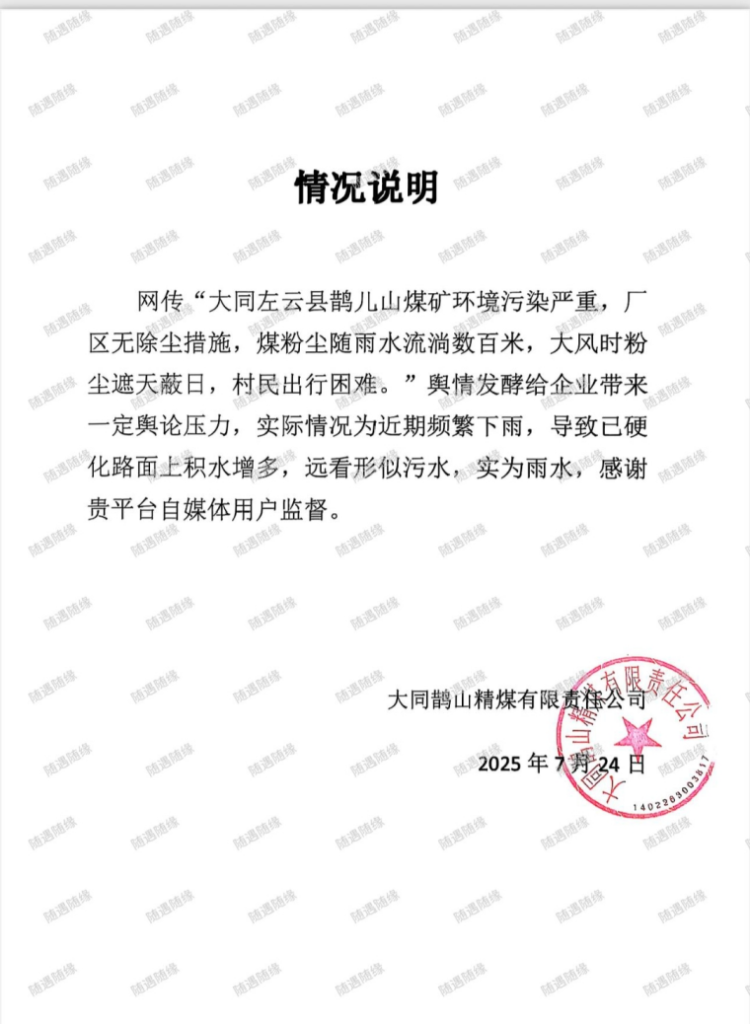 近日,大同鹊儿山精煤有限责任公司因环境污染问题被媒体曝光后,非但没有积极整改,反而试图通过删稿掩盖问题。 这一行为不仅暴露了企业漠视生态环境与公共健康的姿态,更折射出某些地方在环保监管与企业发展间的扭曲逻辑——用村民的健康换取煤矿的经济利益,成为一场触目惊心的现实博弈。删稿背后的权力与利益纠葛:企业“遮羞”与监管失效的双重阴影 媒体曝光本应是环境问题的“照妖镜”,但在鹊儿山精煤案中却沦为资本运作的“消音器”。企业不惜代价删除报道,折射出其对负面信息扩散的恐慌,更暗示污染问题绝非个案,而是长期存在的“公开秘密”。这种“掩耳盗铃”式的应对,本质上是将企业形象置于公共利益之上,暴露了企业社会责任的彻底缺失。 而删稿行为得以实施,或暗含地方监管的默许甚至共谋:当环保执法与企业经济贡献产生冲突,某些监管部门可能选择“睁一只眼闭一只眼”,放任污染继续,形成“监管俘获”的恶性循环。二、污染之痛与利益之惑:村民健康的代价与资本贪婪的扩张 煤矿开采带来的污染是立体式的。煤矸石随意倾倒导致土壤退化、扬尘污染侵蚀呼吸系统,废水排放威胁地下水安全……这些环境问题对周边村民而言,是切身的生存危机。 然而,企业为追求煤炭产量与利润最大化,往往将环保成本外部化——压缩治污投入,放任生态破坏。地方政府若片面追求GDP增长,亦可能纵容企业“带病生产”。于是,村民的健康成为产业链上的隐形牺牲品,企业的“黑色利益”与民众的“绿色权益”形成尖锐对立。三、制度失守与治理困境:环保执法为何屡屡“败”于利益算计从鹊儿精煤山事件可窥见更深层的制度漏洞。 一方面,现有处罚机制威慑力不足:罚款数额与企业获利相比或仅为“九牛一毛”,停产整顿可能因地方保护而难以落实;另一方面,环保监管存在“运动式执法”弊端——督察组到来时“突击整改”,风头过后“死灰复燃”。此外,公众监督渠道不畅、村民维权成本高,更让污染行为缺乏有效制约。当制度无法为健康与生态兜底,利益驱动下的污染便愈演愈烈。四、破局之道:重构“生命至上”的发展伦理,以法治与共治重塑生态正义 要终结“删稿遮污”的荒诞剧,需多维度施策。首先,提高环境违法成本,建立“污染终身追责”机制,让企业不敢越界;其次,强化监管独立性,杜绝地方政府“护短”行为,引入第三方监测与公众参与,构建透明监督体系;再者,推动煤炭产业绿色转型,将生态修复纳入企业考核,引导其从“掠夺式开采”转向可持续发展。 最终,唯有将“人民健康优先”真正写入发展准则,才能打破利益与生态的错位博弈。鹊儿山精煤的删稿闹剧,是环境污染与资本博弈的缩影。它警示我们:当企业利益凌驾于民生福祉之上,当监管沦为利益的附庸,环保便成为空谈。唯有以法治利剑斩断黑色链条,以公共监督照亮灰色地带,方能守护一方净土,让发展回归“以人为本”的正轨。毕竟,健康的土地与呼吸,远比冰冷的煤炭产值更珍贵。