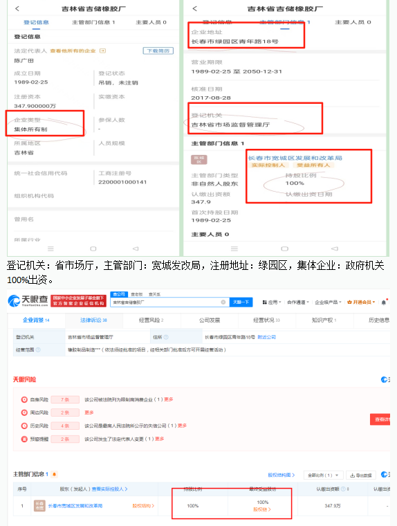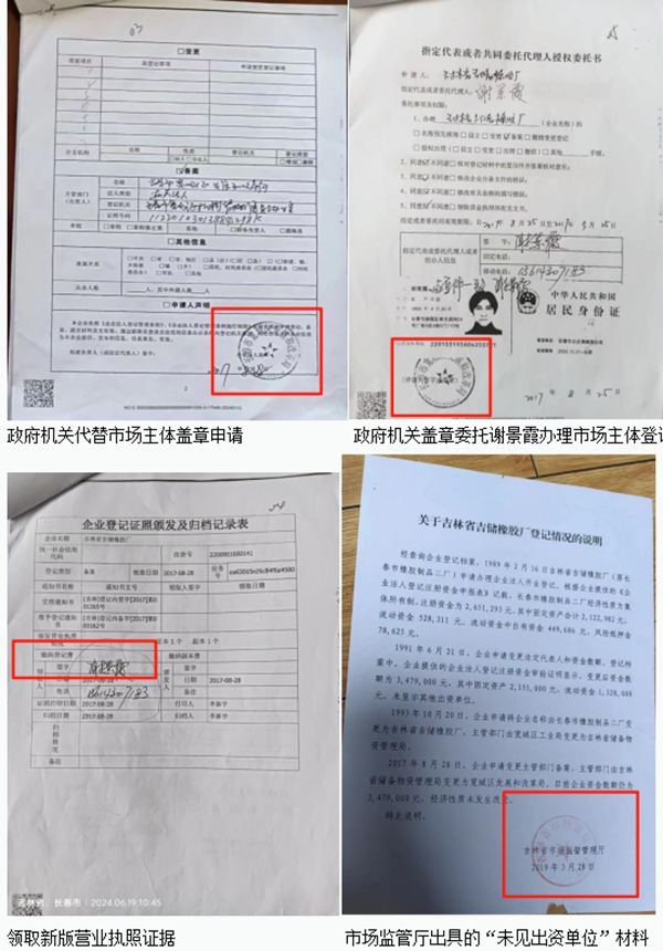 二、 程序适用与后续执照问题:规范执行遭挑战 1.“备案”权限争议: 省市场监管厅曾通过官方渠道(如省长信箱)解释称“申请人提供什么,审批机关无权拒收”。此说法被批评为推卸审核责任,涉嫌具有“以备案之名行许可之实”的违法行为,未能解释为何将本属“业务变更登记”范畴的法定代表人事项纳入“备案”程序处理。 2.“出资人”与“主管部门”概念之争:将宽城区发改局登记为“100%出资人”,此举直接践踏两部铁律:《中华人民共和国城镇集体所有制企业条例》第四条:集体财产属劳动群众所有;《中国共产党纪律处分条例》第一百零五条:严禁党政机关经商办企业。 时任省市场监管厅官员(现副厅长陈宇)却辩称“集体企业的出资人和主管部门并非同一概念”。然而,宽城区法院在2018年相关行政诉讼裁定((2018)吉0103行初51号)中明确认定在该案背景下“二者等同”。审批办的具体行政行为与后续解释及司法认定存在明显矛盾。 3.登记信息与“未见出资单位证明”严重矛盾。 笔者从橡胶厂职工们处看到一份吉林省市场监督管理厅于2019年3月28日出具的《关于吉林省吉储橡胶厂登记情况的说明》。 该说明称:“经查询企业登记档案,1989年2月16日,吉林省吉储橡胶厂(原长春市橡胶制品二厂)申请办理企业法人开业登记。根据企业提供的《企业法人登记注册资金申报表》记载:“长春市橡胶制品二厂经济性质为集体所有制,注册资金为2,651,293元,其中固定资产合计2,122,982元,流动资金528,311元。流动资金中自有资金449,686元,风险抵押金78,625元。1991年6月21日,企业申请变更法定代表人和资金数额。登记档案中,企业提供的企业法人登记注册资金审验证明显示,变更后资金数额为3,479,000元,其中固定资产2,151,000元,流动资金1,328,000元。未显示其他出资单位。1993年10月20日,企业申请将企业名称由长春市橡胶制品二厂变更为吉林省吉储橡胶厂,主管部门由宽城区工业局变更为吉林省储备物资管理局。 2017年8月28日,企业申请变更主管部门备案,主管部门由吉林省储备物资管理局变更为宽城区发展和改革局。目前企业资金数额仍为3,479,000元,经济性质未发生改变。” 这份说明的重要之处在于,它有力的证明:橡胶厂“未显示其他出资单位”,也就是说宽城区发改局并非100%出资人! 4、“吊销”执照重现市场之谜: 2005年,吉林省吉储橡胶厂营业执照已被依法吊销。在2017年8月28日的变更备案后,宽城区发改局公务人员谢景霞作为“指定代理人”领取了新版营业执照。橡胶厂职工方指认签字证据。但省市场监管厅2024年12月26日在人民网留言板回复时候明确否认颁发了新版营业执照,称虽然委托事项及权限中同意谢景霞领取营业执照和有关文书,但是谢景霞领取的仅为《备案通知书》,且此次备案“不涉及营业执照照面信息变更”。双方说法存在根本性对立。